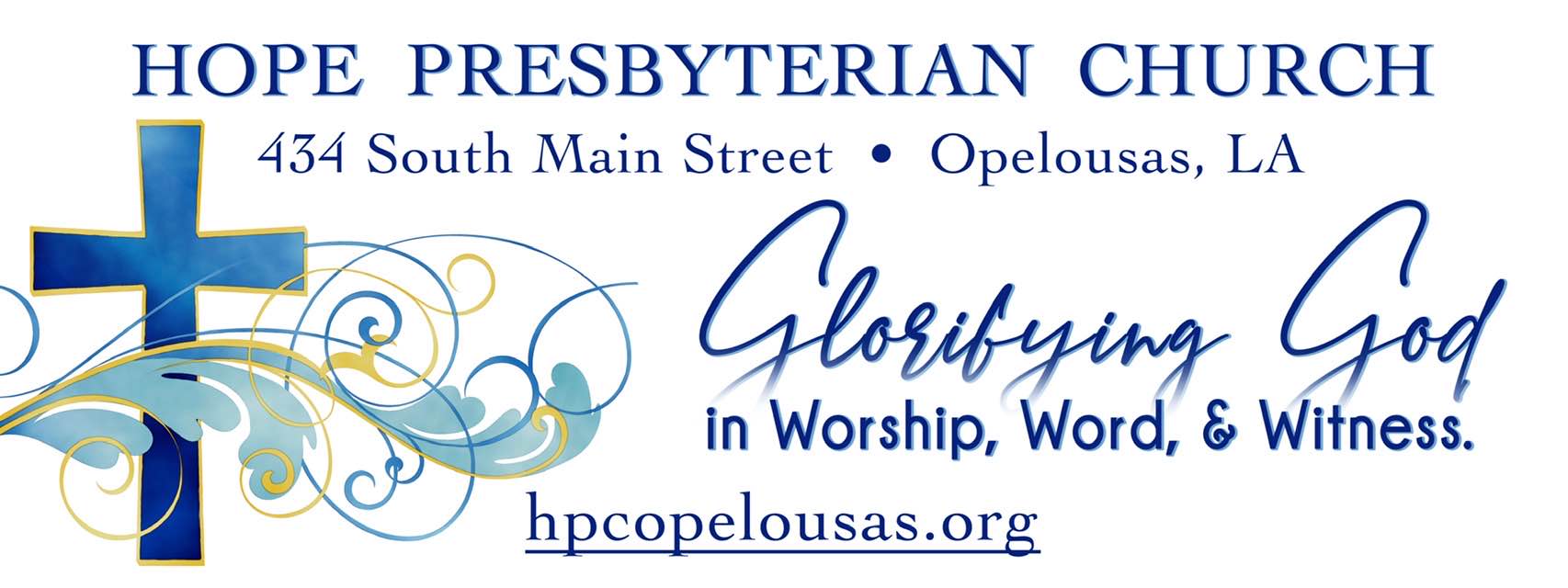 The Hope Presbyterian Session met last night (3/17/20) and decided to immediately cancel all congregational gatherings until at least April 5, 2020. We desire to submit to the presidential guidelines to restrict groups to 10 or less. This means that there will be no public worship on March 22 or March 29 and there will be no Sunday School, Men’s and Women’s Bible studies, home groups, prayer gatherings or Youth Groups. We plan on live-streaming our Sunday worship services and making the sermons available on our church website: hpcopelousas.org. Thanks for your prayers and faithful support of the Gospel ministry at our church. – Pastor Dean